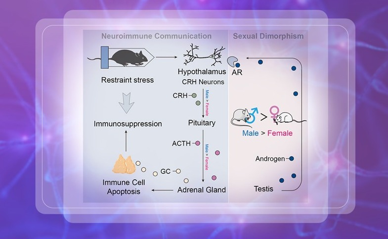 2025.03生物医学交叉研究院王晓东实验室揭示精神压力导致免疫细胞凋亡具有性别差异的机制
