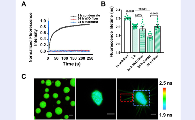 3月31日,清华大学生命学院陈春来课题组在《物理化学快报》发表题为“利用荧光蛋白的荧光寿命探究FUS凝聚体的形成及液-固相变”的研究论文,成功建立了一种基于荧光蛋白荧光寿命的检测方法,实现了对FUS凝聚体从液态转变为固态过程中内部流动性的实时动态...