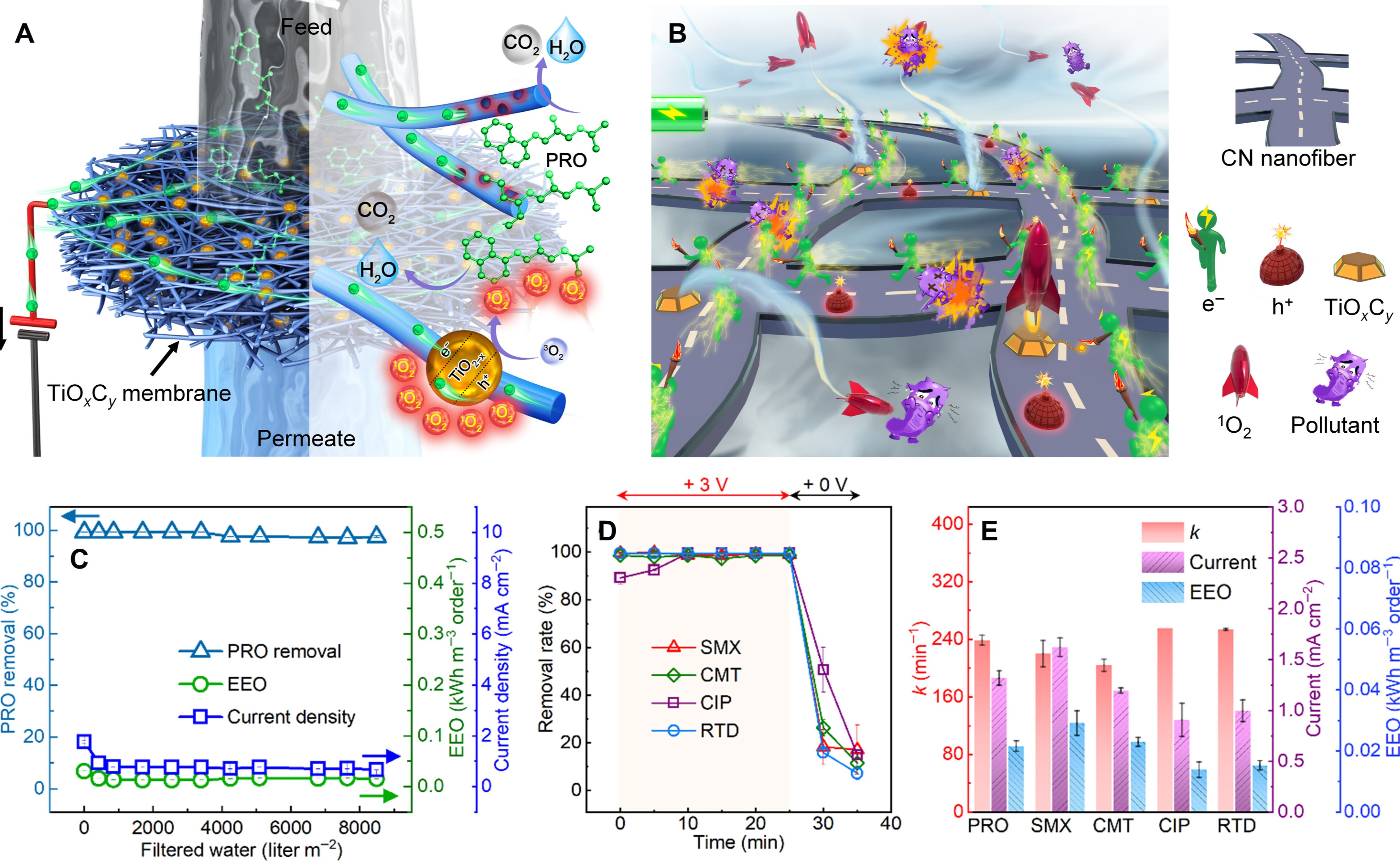 近日,清华大学环境学院黄霞课题组联合北京林业大学、麻省理工学院、宾夕法尼亚州立大学等机构,提出了一种电场限域电纺-电喷(DESP)策略,成功制备出单原子钛及亚3纳米碳氧化钛(TiOxCy)高度分散于碳纳米纤维网络中的三维自支撑电催化膜。