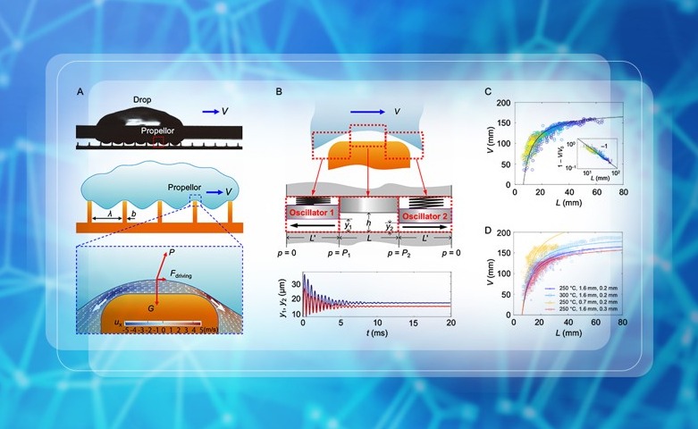 近日,清华大学航院研究人员发现并揭示了一种全新的机制:在对称结构表面上,莱顿弗罗斯特液滴能够实现稳定的自驱动,这一发现打破了只有非对称结构才能驱动液滴定向输运的传统观点。