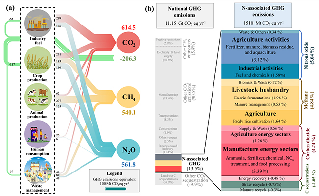 近日,清华大学化工系胡山鹰课题组通过构建物质流分析法与生命周期清单方法构建了基于代谢视角的碳-氮耦合环境足迹模型,并整合国家尺度温室气体清单,系统分析了氮代谢对温室气体排放的贡献。