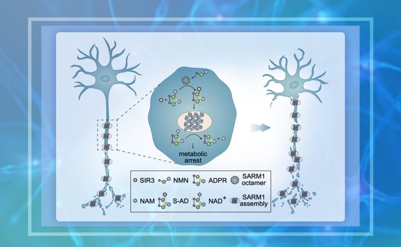 在近期发表的一项研究中,清华大学生物医学交叉研究院的王晓东团队通过系统的生物化学实验,揭示了SARM1激活的分子过程,并提出了一个全新的“两步激活模型”解释了这些现象。
