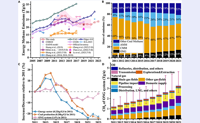 近日,清华大学核研院能源环境经济研究所滕飞教授课题组构建了设施级中国能源甲烷排放动态数据库,揭示了2011至2021年间甲烷排放的时空变化特征与驱动机制。