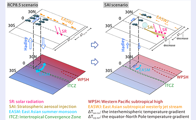 清华大学深圳国际研究生院范远超团队及其合作者利用挪威地球系统模式(NorESM1-ME),在高排放情景(RCP8.5)背景下模拟了三种SRM方案实施后的气候与水文响应,并以中等减排情景(RCP4.5)作为辐射强迫控制的参照目标。该研究系统揭示了不同SRM地球工程方...