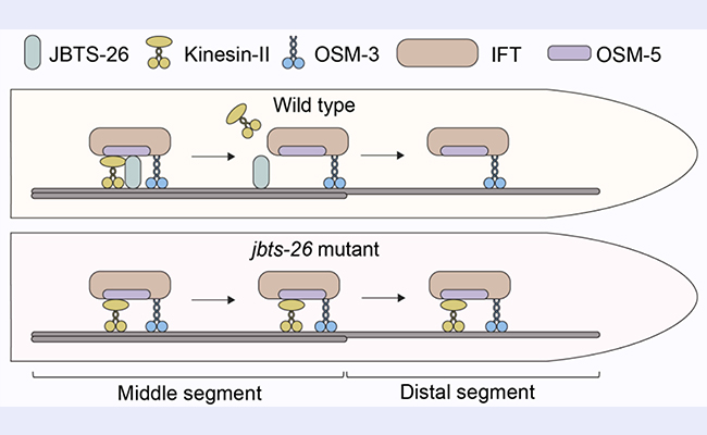 北京时间11月21日,清华大学生命科学学院欧光朔教授课题组在《美国国家科学院院刊》发表题为“Joubert综合征相关蛋白JBTS-26界定纤毛驱动蛋白的区室化运动”的研究论文,揭示了JBTS-26通过竞争性结合机制促进kinesin-II在双联体微管上与IFT复合物解离,进...