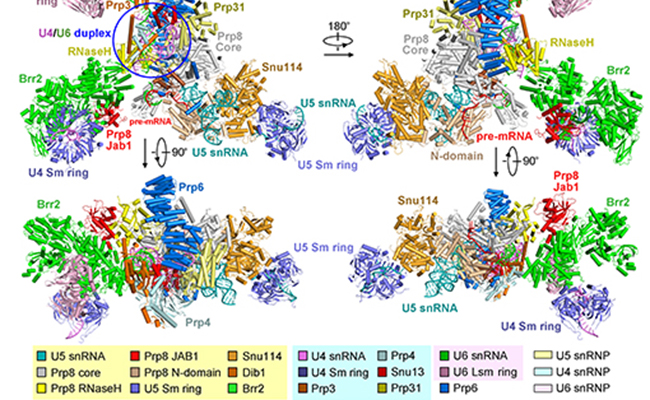2016年1月8日,清华大学生命学院施一公教授研究组在《科学就剪接体的结构与机理研究再发长文,题为《U4/U6.U5 三小核核糖核蛋白复合物3.8埃的结构:对剪接体组装及催化的理解》,报道了酿酒酵母(Saccharomyces cerevisiae)剪接体组装过程中的一个关键复...