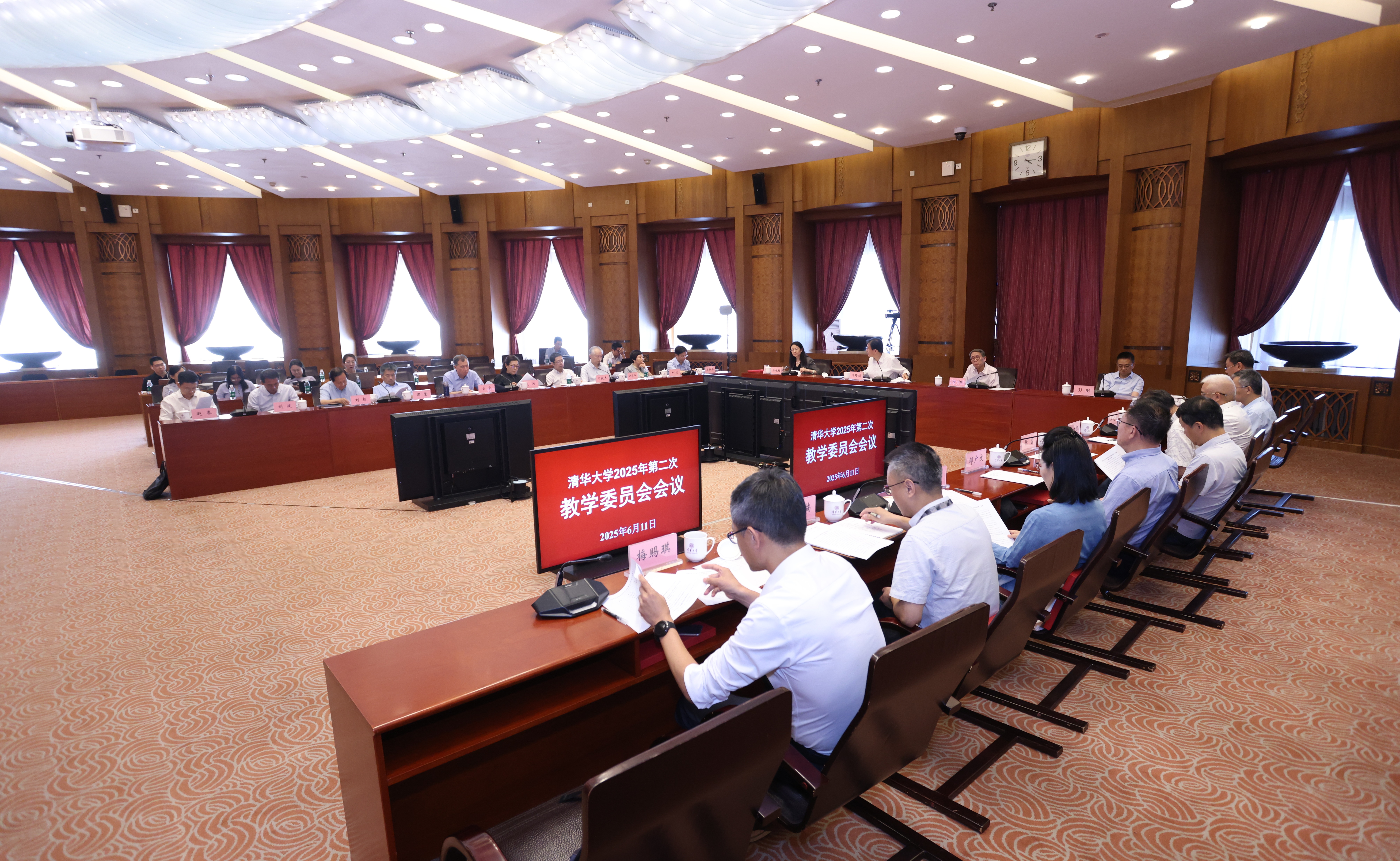 6月11日下午,清华大学教学委员会2025年第二次全体会议在主楼接待厅召开。校长、校教学委员会主任李路明,副校长、副主任彭刚,副主任甘阳、李艳梅等23位委员出席会议。会议由李路明主持。