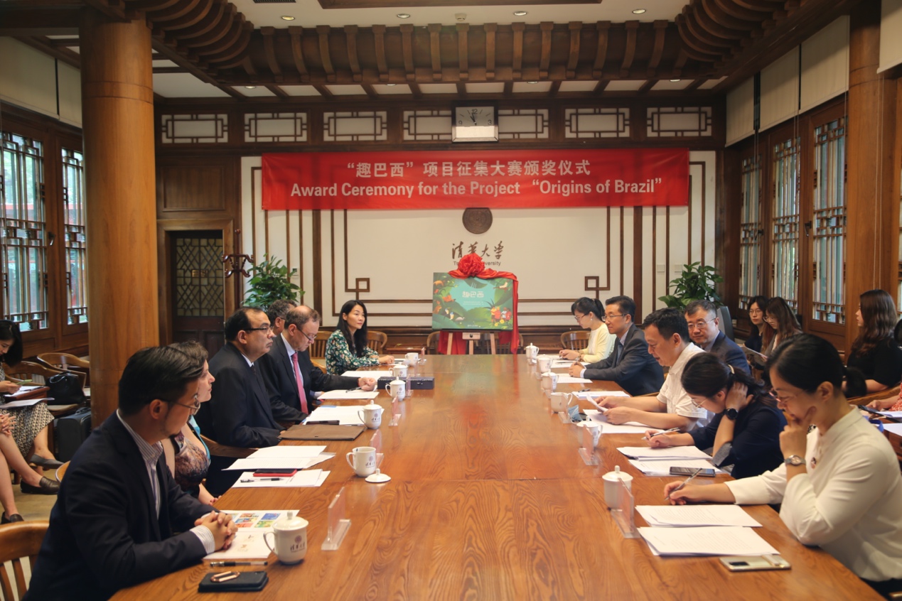 7月27日上午,“趣巴西”项目大赛颁奖仪式在清华大学工字厅举行。巴西驻华大使保罗·瓦莱(PauloEstivallet),联合国教科文组织驻华代表夏泽翰(Shahbaz Khan),巴西驻华公使塞尔索·佩雷拉(Celso Pereira),公共外交主管拉里萨·利马·科斯塔(Larissa Li...
