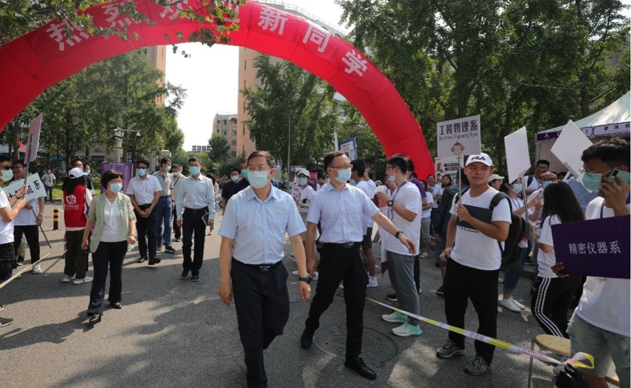 9月2日,清华大学2021级本科新生到校报到。下午,校长邱勇、副校长杨斌、校党委副书记过勇一行来到学生区迎新点、C楼学生课外活动空间检查迎新现场各项工作,看望前来报到的2021级本科新生并慰问参与迎新工作的师生员工。