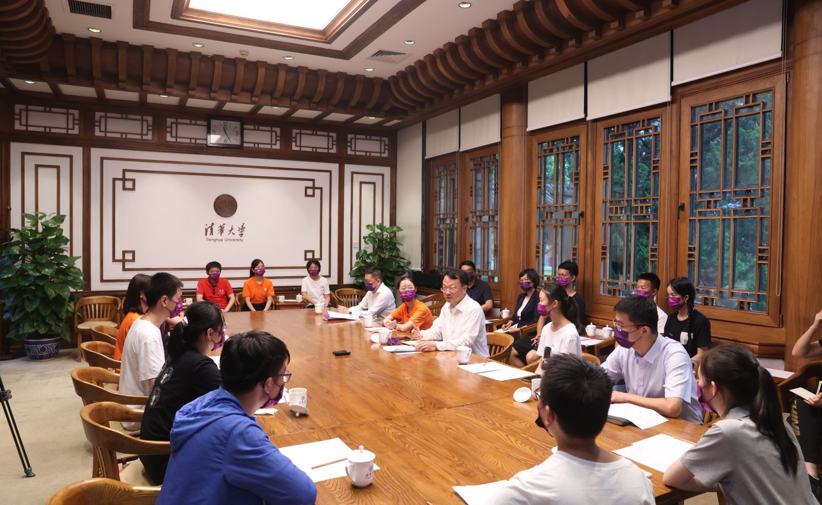 8月18日上午,2022级本科新生代表座谈会在工字厅东厅举行,王希勤校长与19位本科新生围桌而坐,倾听同学们心声,畅谈清华人的家国情怀。校党委副书记过勇、副校长彭刚出席会议。