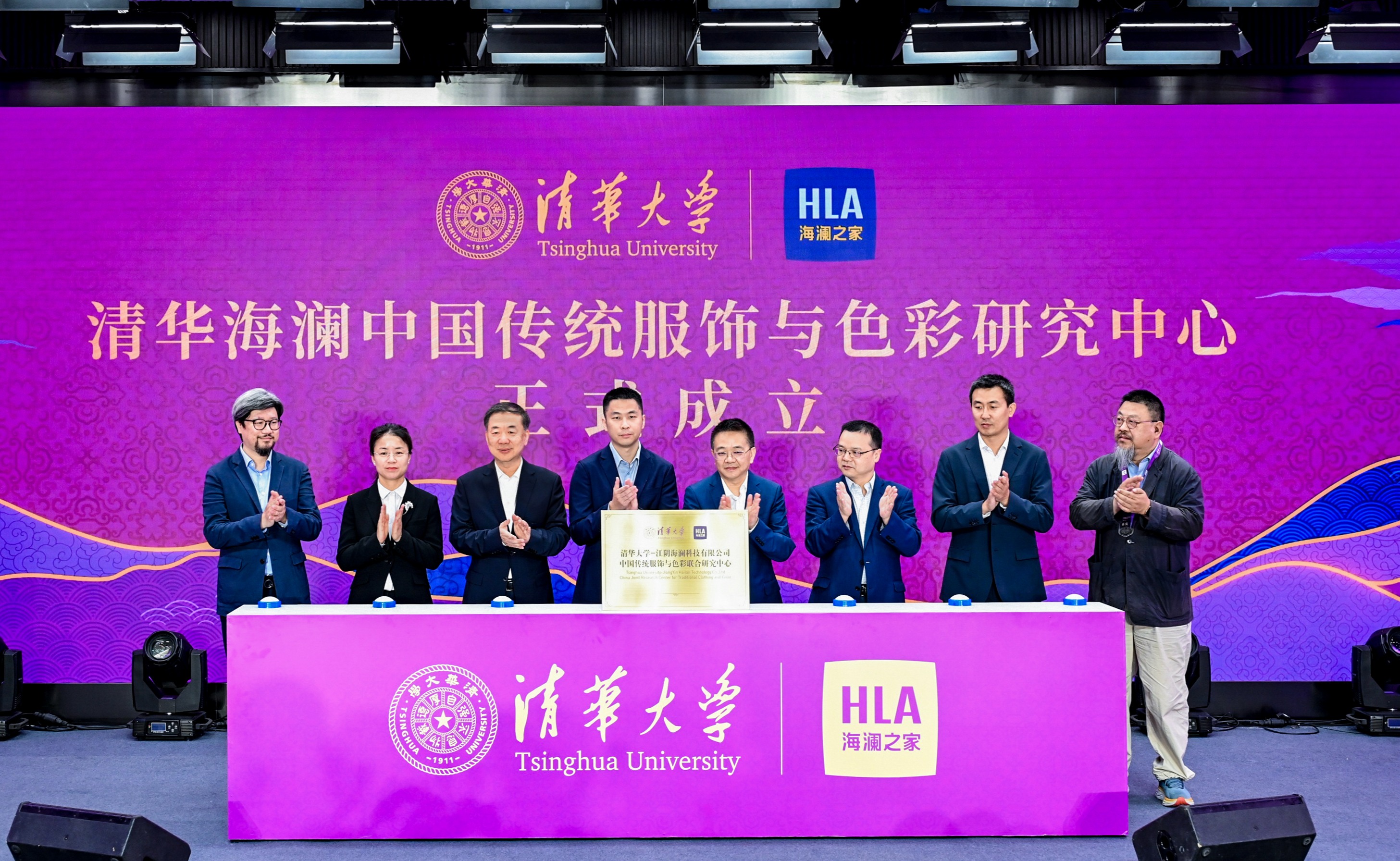 5月25日,清华海澜中国传统服饰与色彩研究中心在清华大学揭牌成立。清华大学副校长彭刚,无锡市委常委、江阴市委书记许峰,海澜集团党委书记、董事长周立宸出席仪式。揭牌仪式由清华大学美术学院党委书记覃川主持。