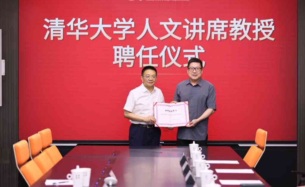 6月19日上午,清华大学人文讲席教授聘任仪式在美术学院A327会议室举行。清华大学副校长彭刚出席活动,并为知名设计史论家杭间颁发聘书。