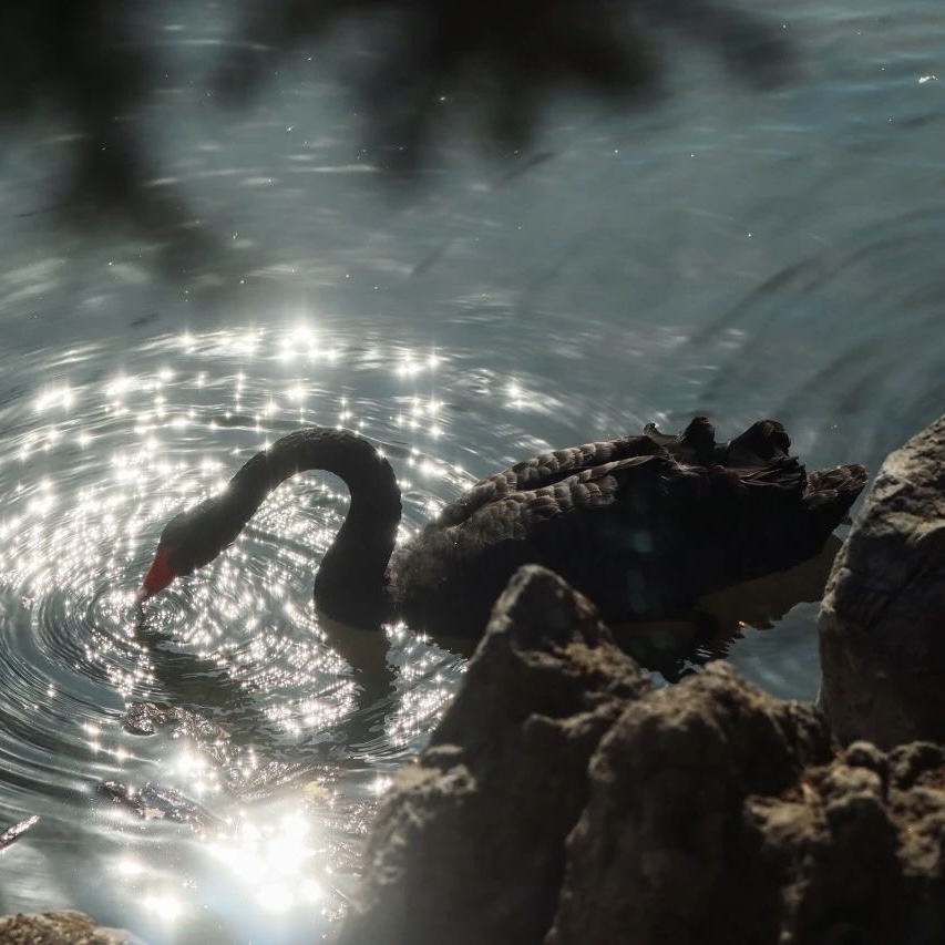 天鹅在湖中畅游,迎春和桃花也悄悄绽放,让人也不禁停下脚步感受这份宁静。