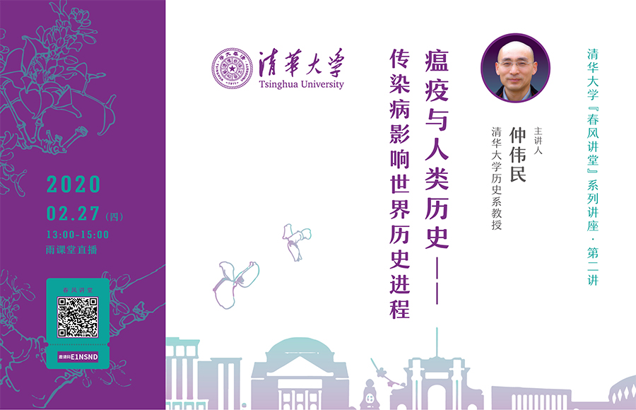 “春风讲堂”系列讲座将约请校内不同领域的专家学者登上讲台,回顾历史经验中的疫情挑战,共论人类社会应对方略。讲座从师生的普遍关切出发,采用不同学科视角,征文考献,述往思来,为师生积极理性应对疫情提供知识智慧。