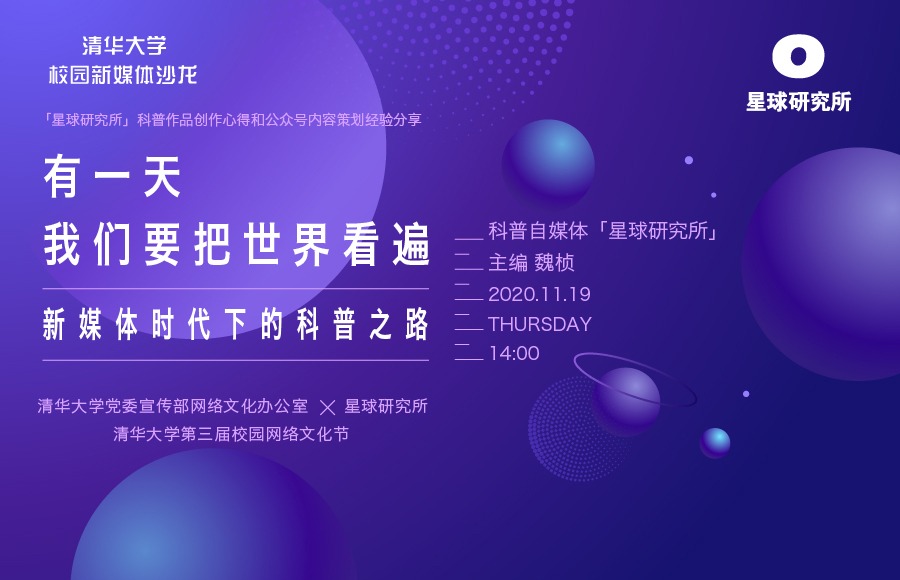 清华大学第三届校园网络文化节携手科普自媒体“星球研究所”分享新媒体时代下科普作品创作心得。