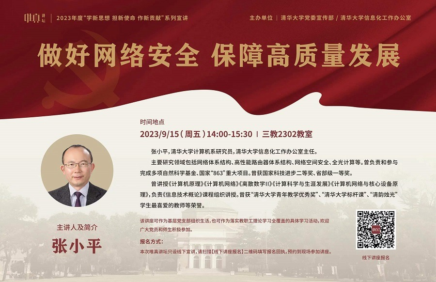 深入学习宣传贯彻习近平总书记关于教育强国、网络强国的重要思想,提升广大师生网络素养、网络安全意识和防护技能,根据教育部部署安排,9 月 11 日至 17 日开展2023年清华大学网络安全宣传周系列活动。