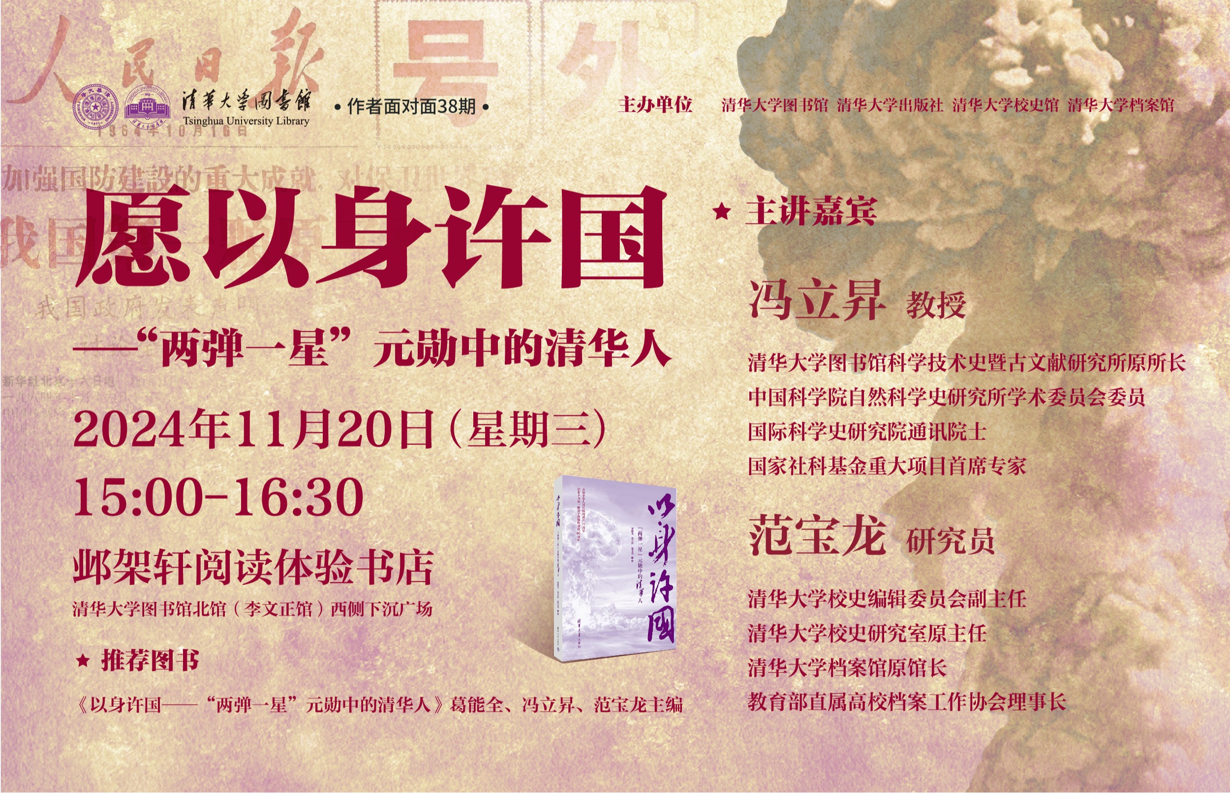 本次活动将通过《以身许国——“两弹一星”元勋中的清华人》的精彩内容,带领大家追溯“两弹一星”背后的感人故事,感受清华人在关键时刻的家国担当,并探讨如何将这一宝贵精神财富融入新时代的伟大征程。